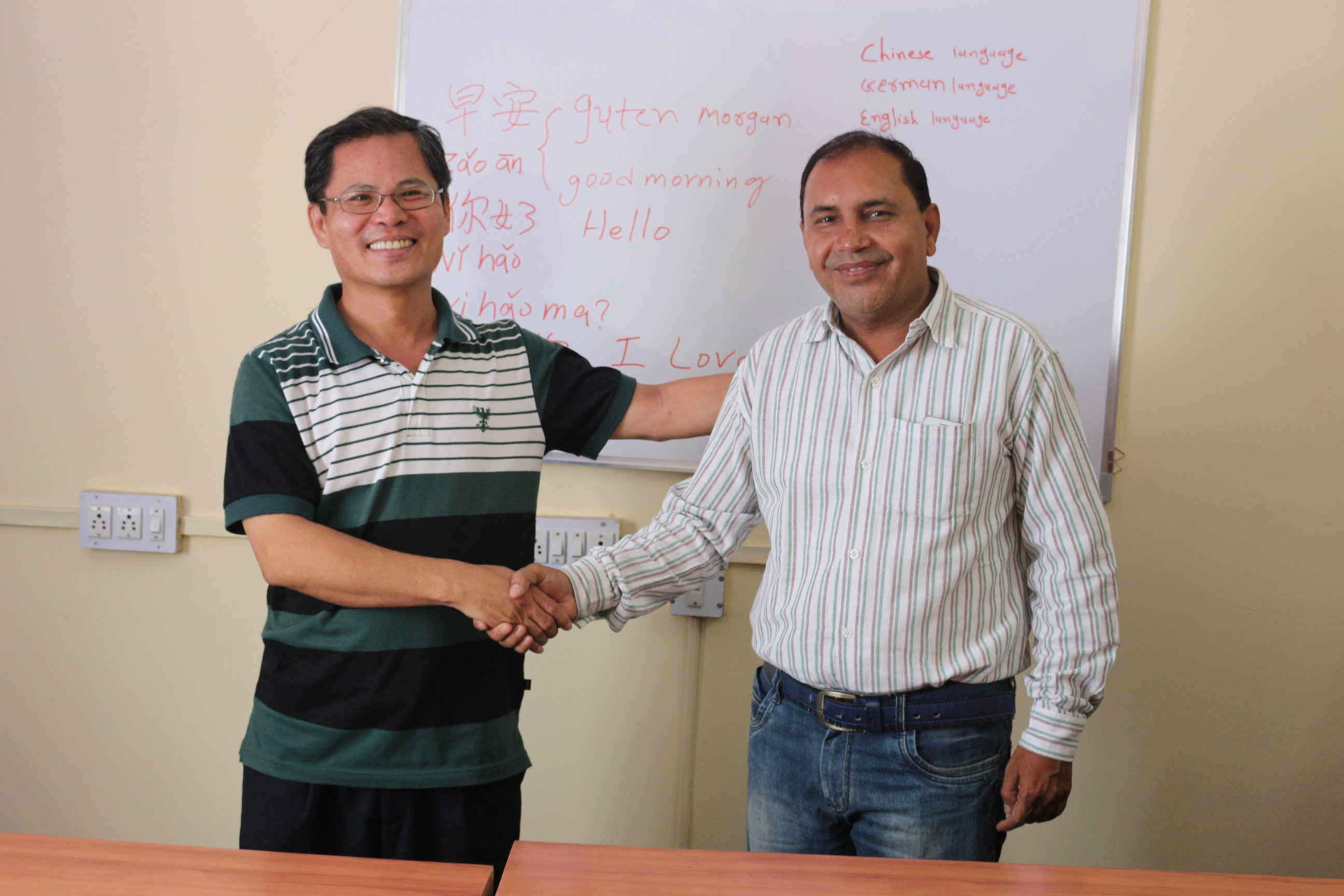 honorable sport minister gujarat rajubhai trivedi with our M.D